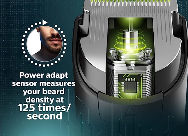 Philips Beard trimmer 3000 series with Power Adapt sensor measures the thickness of your beard at 125 times per second, and adapts to give you the perfect trim, every single time.