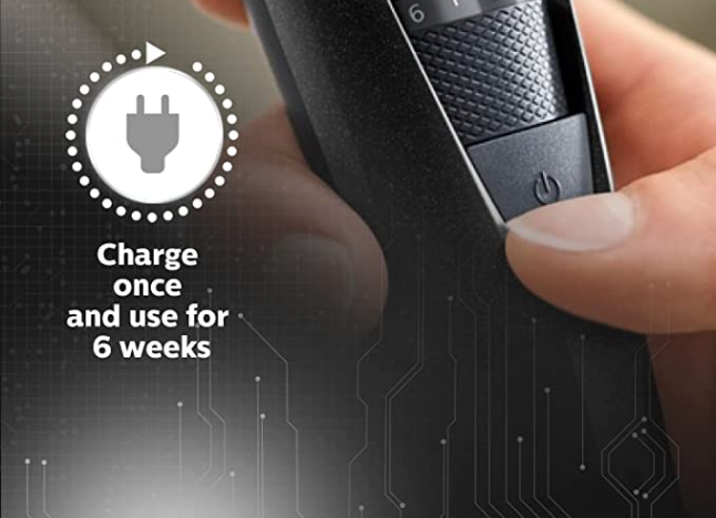 This trimmer with the innovative Lift & Trim system lifts and captures more low-lying hairs for efficient, even trimming results. This way you will easily achieve the 3-day stubble, short beard or long beard look you want.